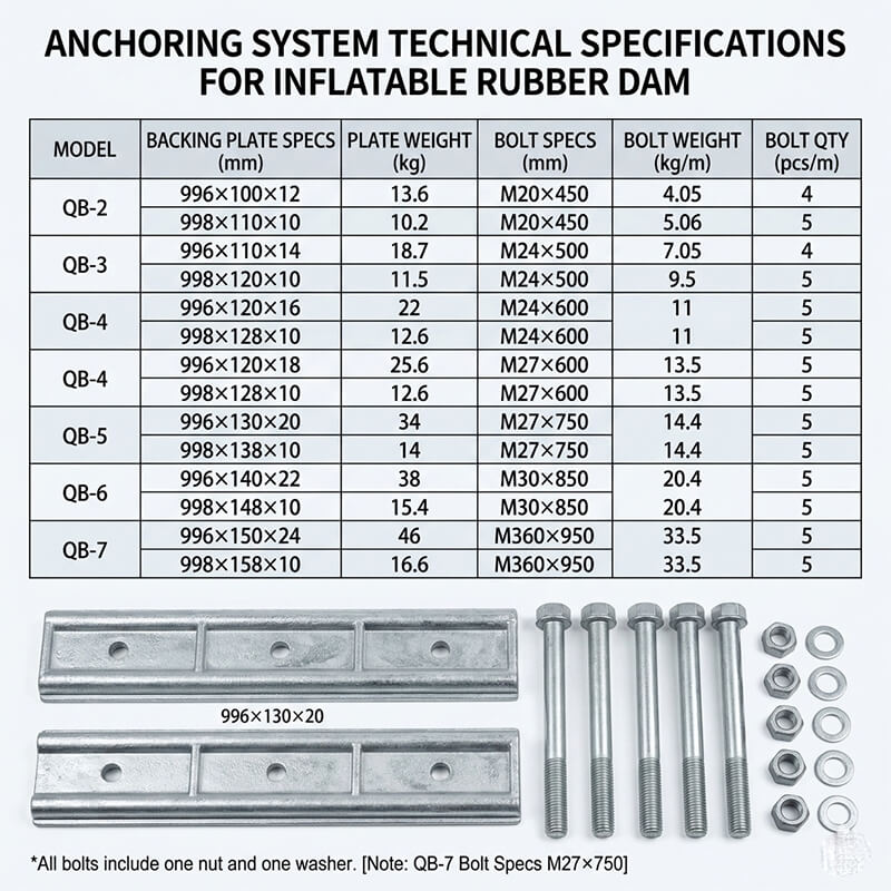 | Model | Plate (Backing Plate) Specs | Plate Weight | Bolt Specs (mm) | Bolt Weight (kg/m) | Bolt Qty (pcs/m) |