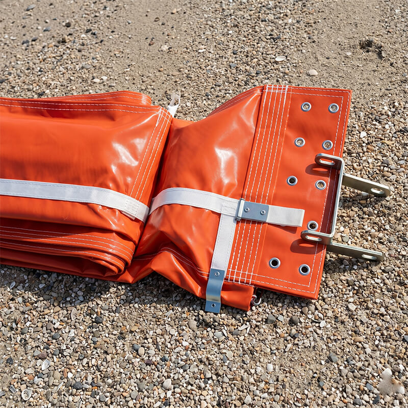 The structure of the Shoreline Oil Boom consists of a main body fabricated from either rubberized nylon fabric or PVC fabric. The upper section features an inflatable air chamber, while the lower section incorporates two water-filled ballast chambers. These three chambers are arranged in a triangular configuration to ensure adequate containment height and meet the buoyancy requirements for the submerged portion of the boom. The boom's extremities are fitted with connecting components and quick-release couplings.